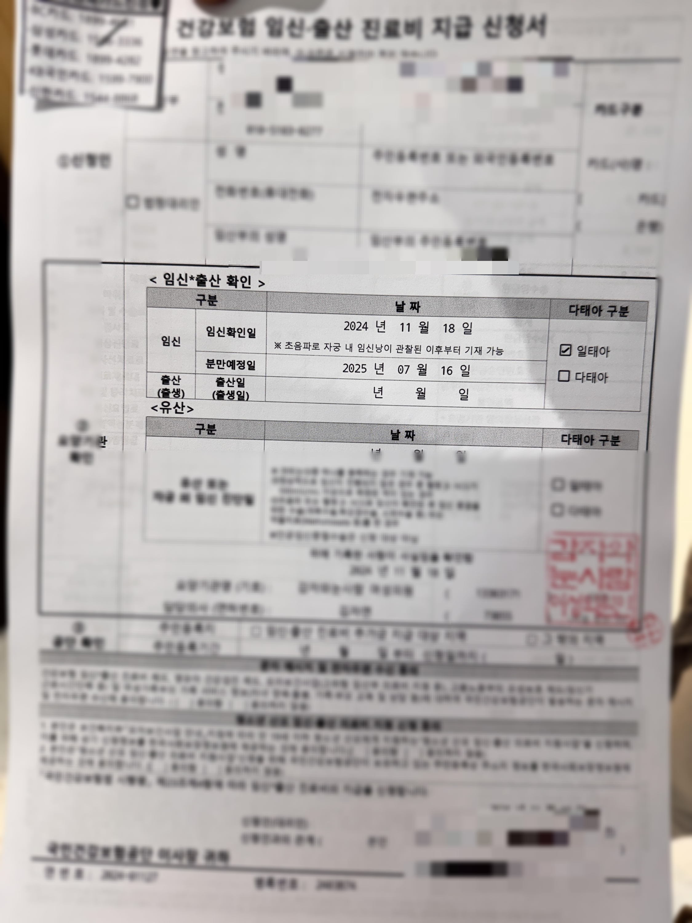 또 임신등록?을 바로 해주셨는지 국민건강보험공단에서 바로