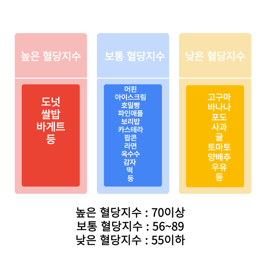 -) 개인적으로는 혈당지수를 매번 검색해 보기 어렵기도 하고 쉽게 끊지 못할 때는 높은 혈당지수 음식들을 무조건 적으로 제한할 게 아니라 나에게 맞는 방법부터 적용해 가는 의미로, '이거 먹었을 때 과식하게 된다!' 하는 것들은 덜 먹고 그 음식들부터 제한하다 보면 조금씩 적응이 가능하더라고요.